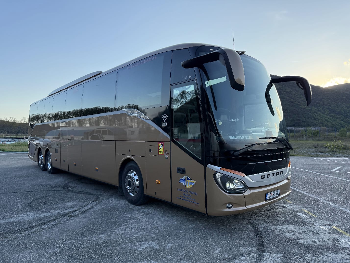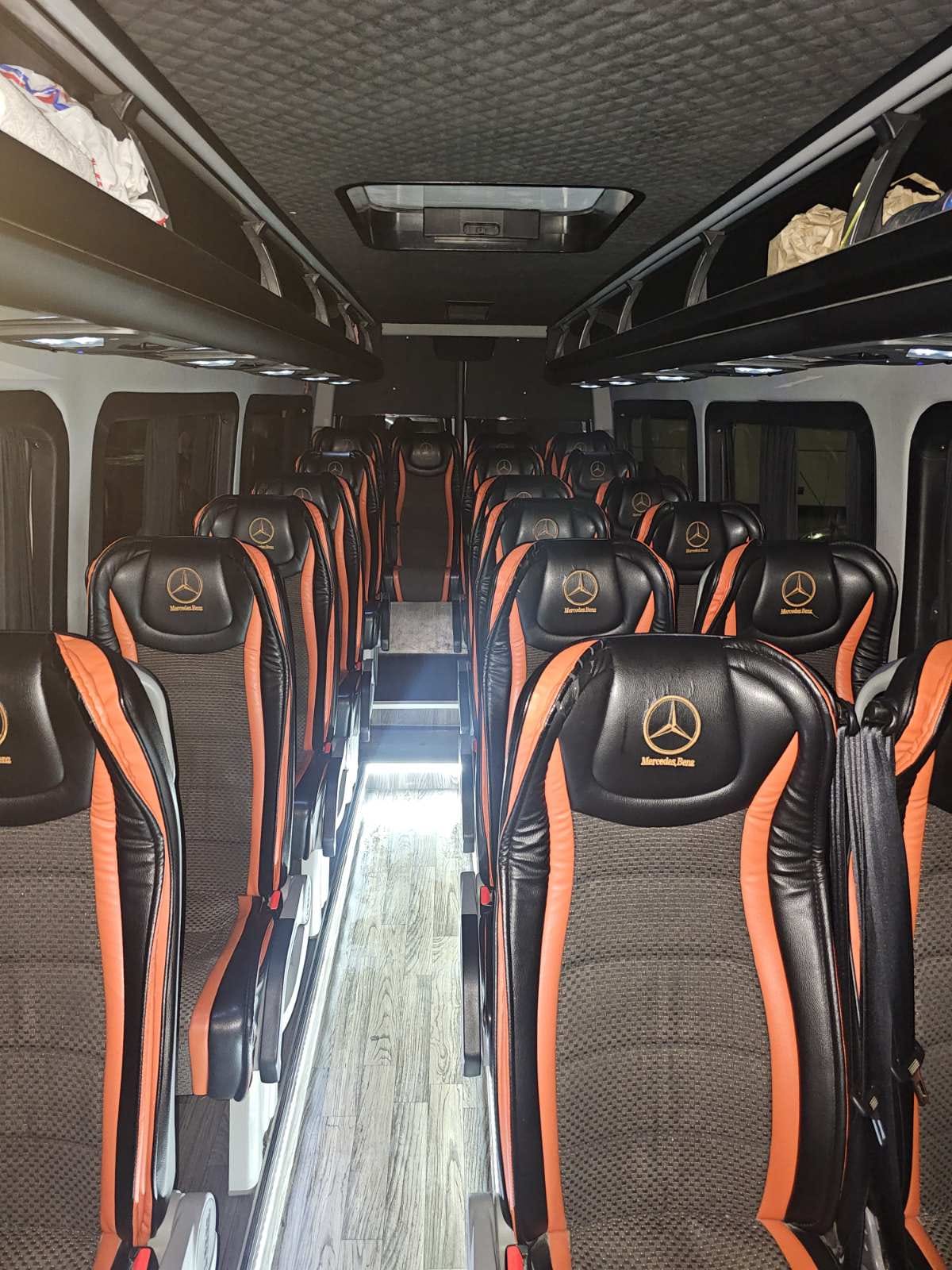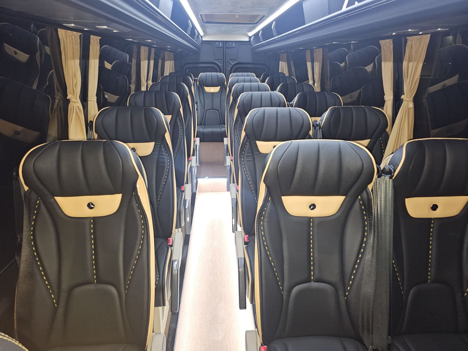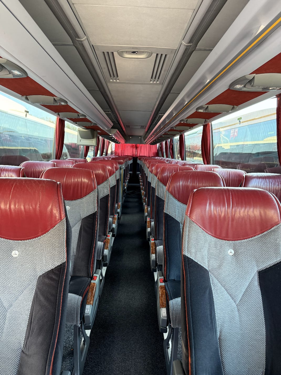 What we offer: Air conditioner, refrigerator, adjustable seats COMFORT CLASS with armrests, footrests, folding table, individual lighting, microphone, safety belts